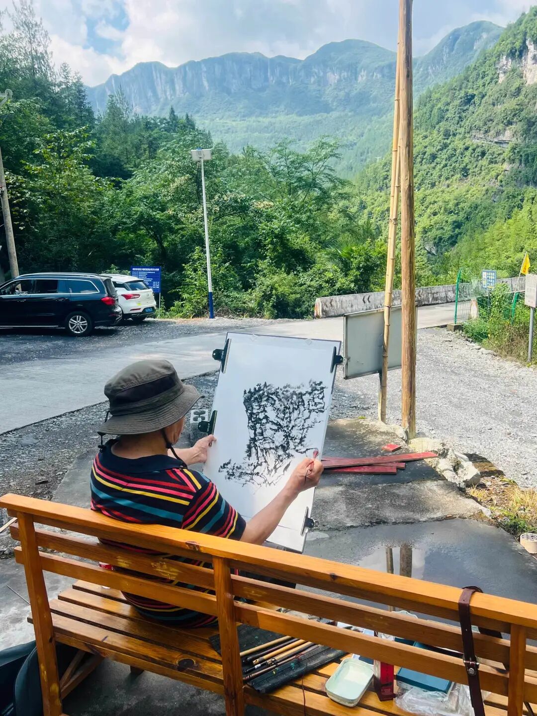 秦岭教授背着画板和颜料,踏上了探索美的征程。他不顾晴天的灰尘满面,不惧雨天的泥泞满身,一心只为捕捉恩施山水的神韵。